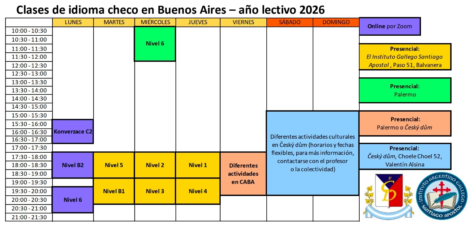 Próximamente comienzan las Clases de Checo en Buenos Aires (Ciclo Lectivo 2026). Los interesados en registrarse para recibir más información deberán enviar un mail con sus datos personales.